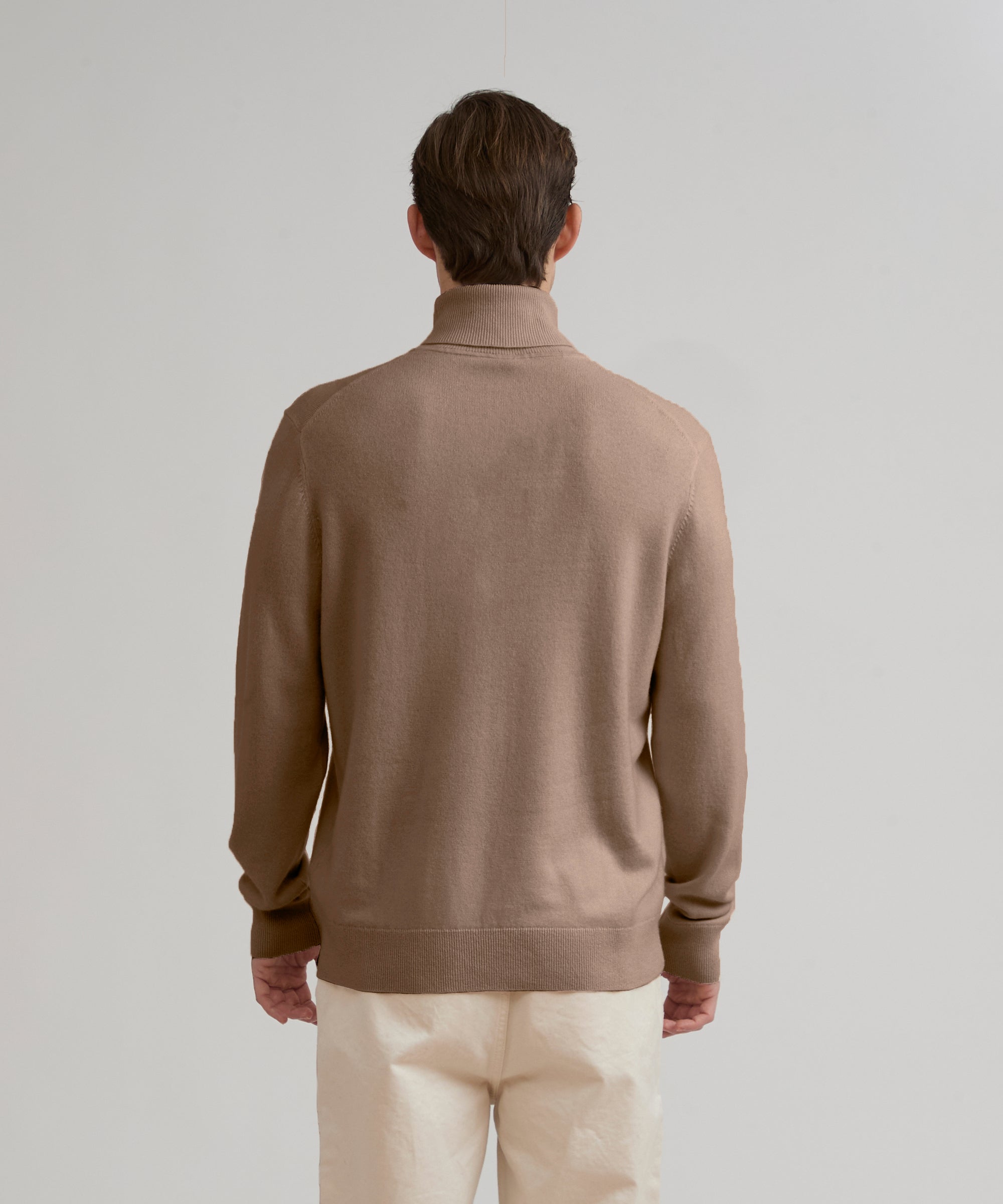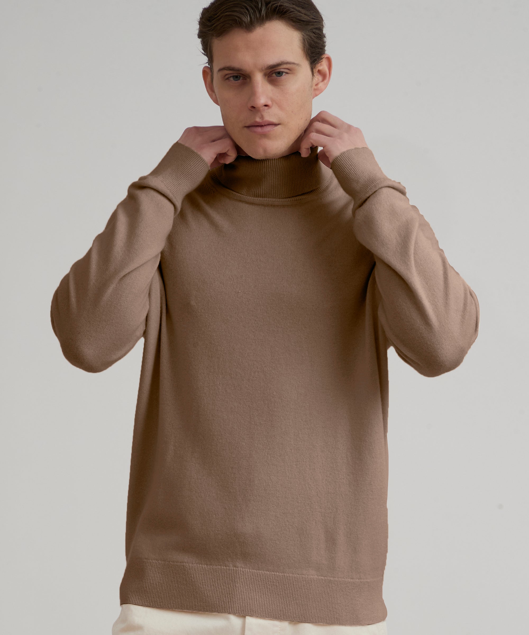 Dolcevita in cashmere extra soft. Modello Areté. Collo, polsi e fondo in costina. Finezza 14.