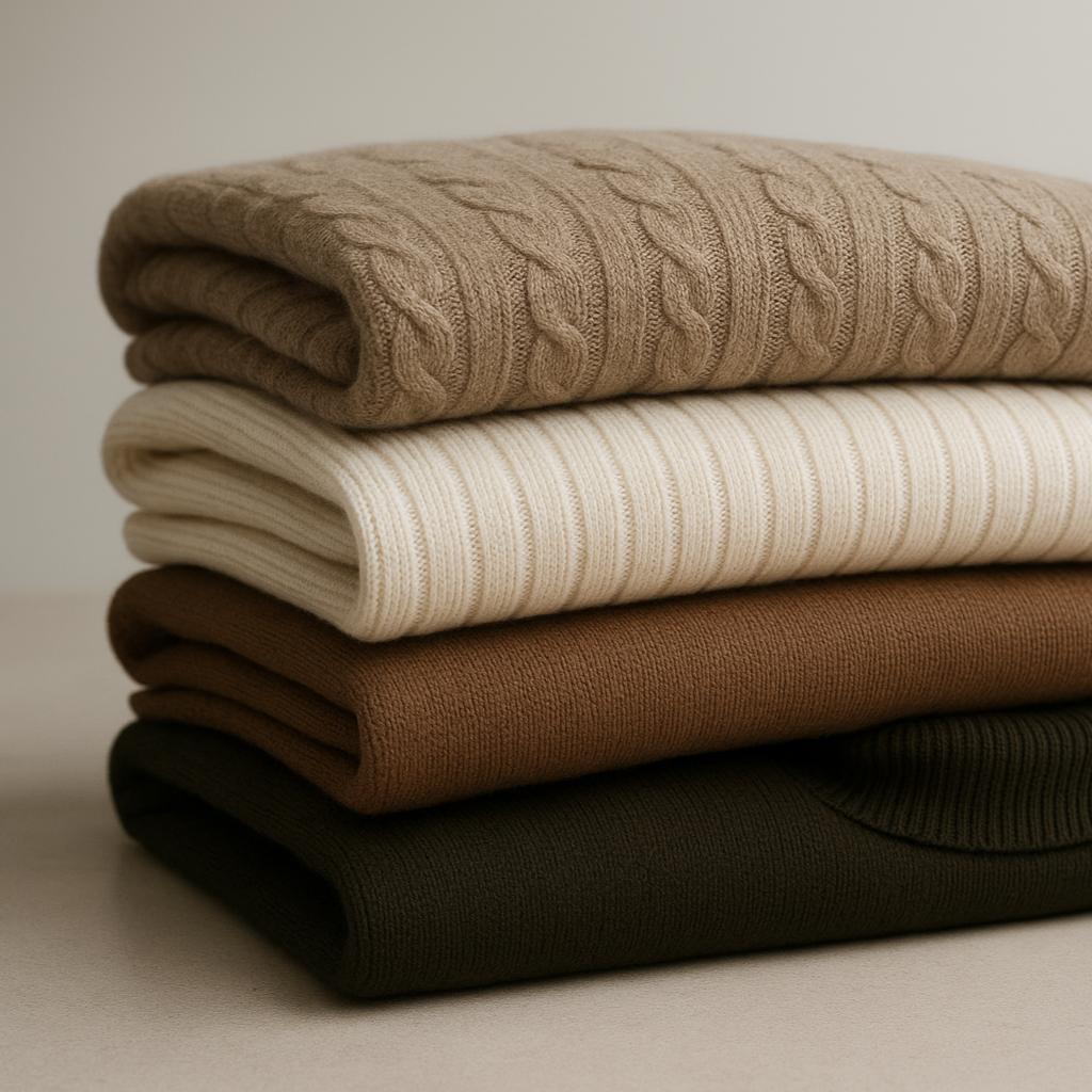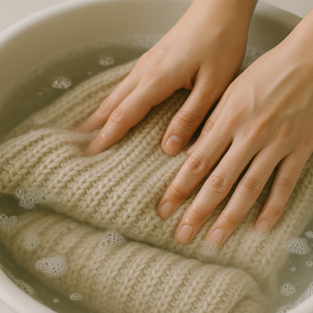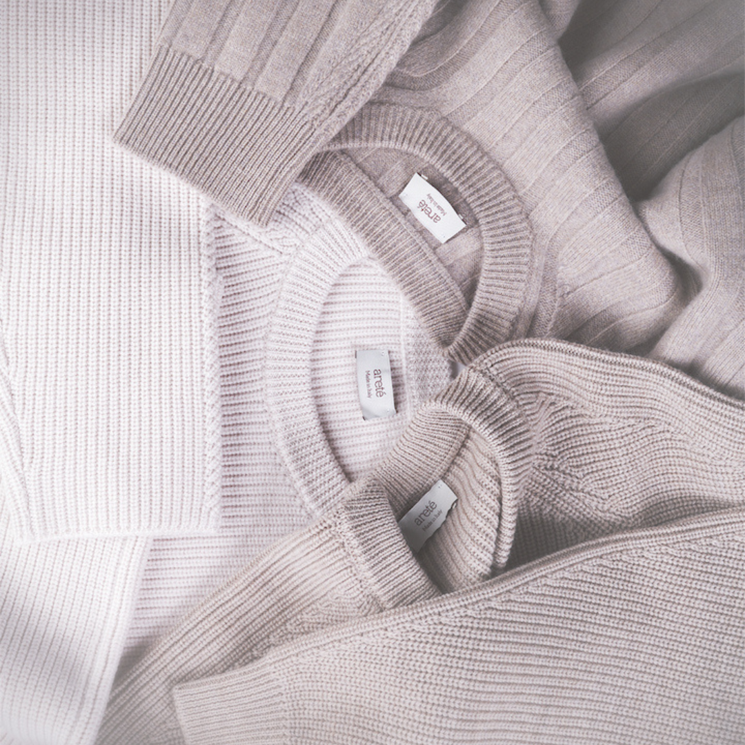 Le nostre maglie in fibre naturali — lana merino, cashmere, seta, cotone biologico e lino — richiedono cure delicate ma semplici. Le maglie non è necessario lavarle dopo ogni utilizzo o mandarle in tintoria. Si consiglia il lavaggio a mano.