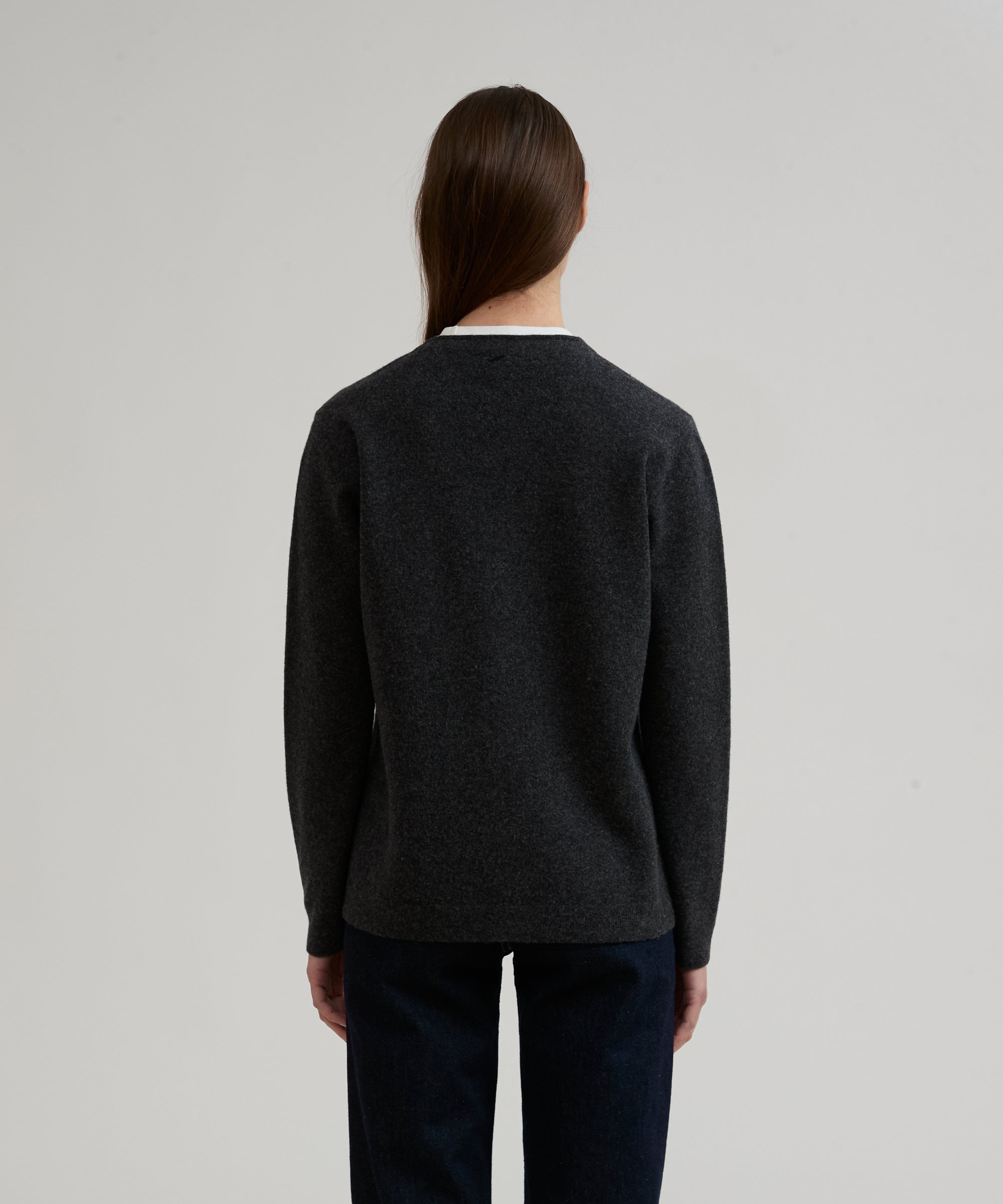Il filato cardato infeltrito viene creato attraverso un processo di cardatura e successivo trattamento di infeltrimento. Questa lavorazione fornisce al capo una texture più compatta e resistente, che trasmette una sensazione di comfort e calore. Certificato RWS e NO MULESING