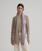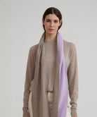 Sciarpa double face in lana merino extrafine cardata infeltrita, modello DUALIS. Realizzata in maglia soffice, presenta dimensioni di 180 cm x 21 cm. Finezza 12.